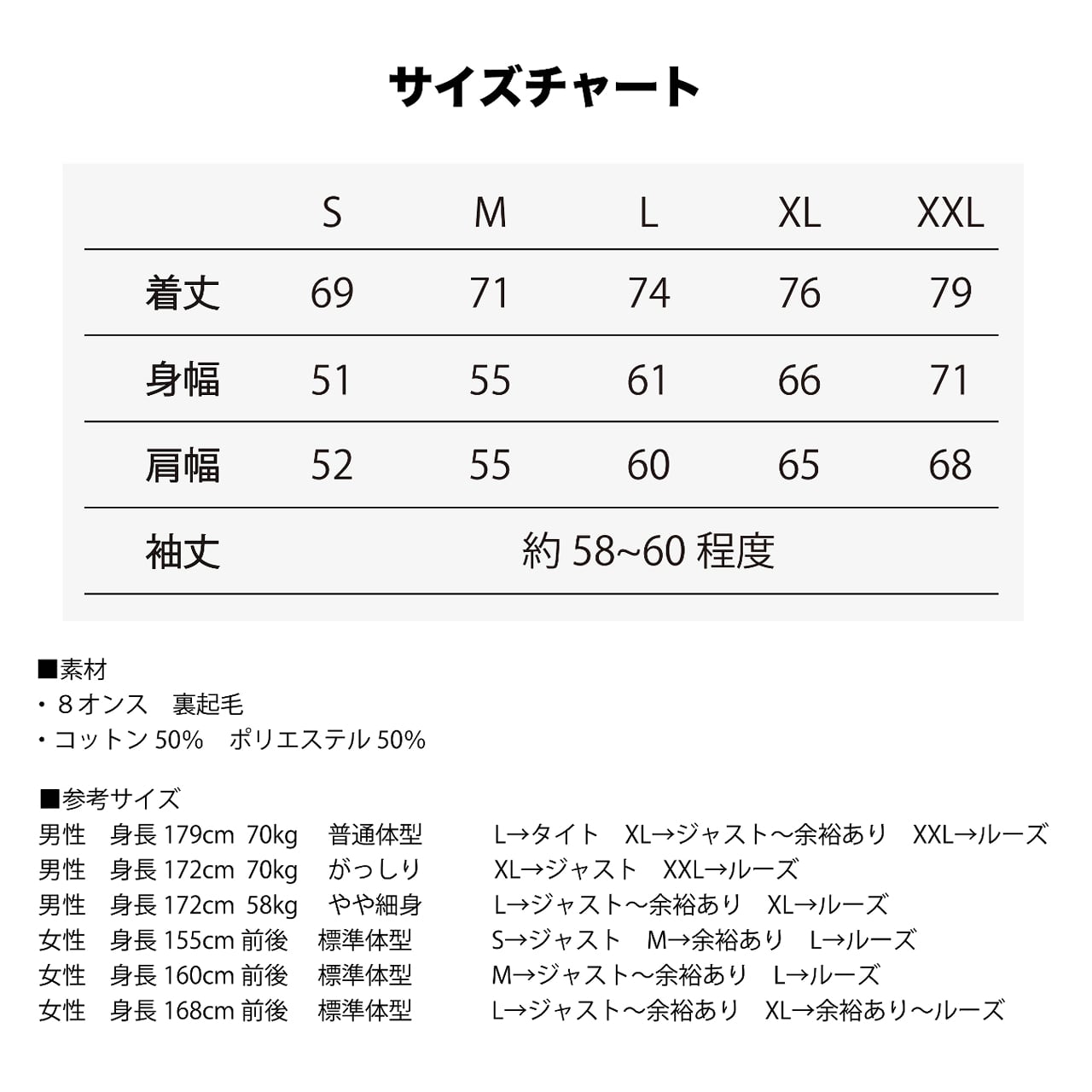 春・秋・冬、オールシーズン活躍する、やや薄手の裏起毛スウェット。ポリエステル50%で柔らかく、伸びのあるボディ。肩幅・身幅・アームホールに余裕のある仕様で、リラックス感のあるシルエット。